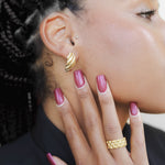 Featuring a beautifully twisted, ribbed design that catches the light from every angle, the Raya Huggies add a touch of playful luxury and personality to any ear stack. Their iconic croissant-style makes them a true standout piece.