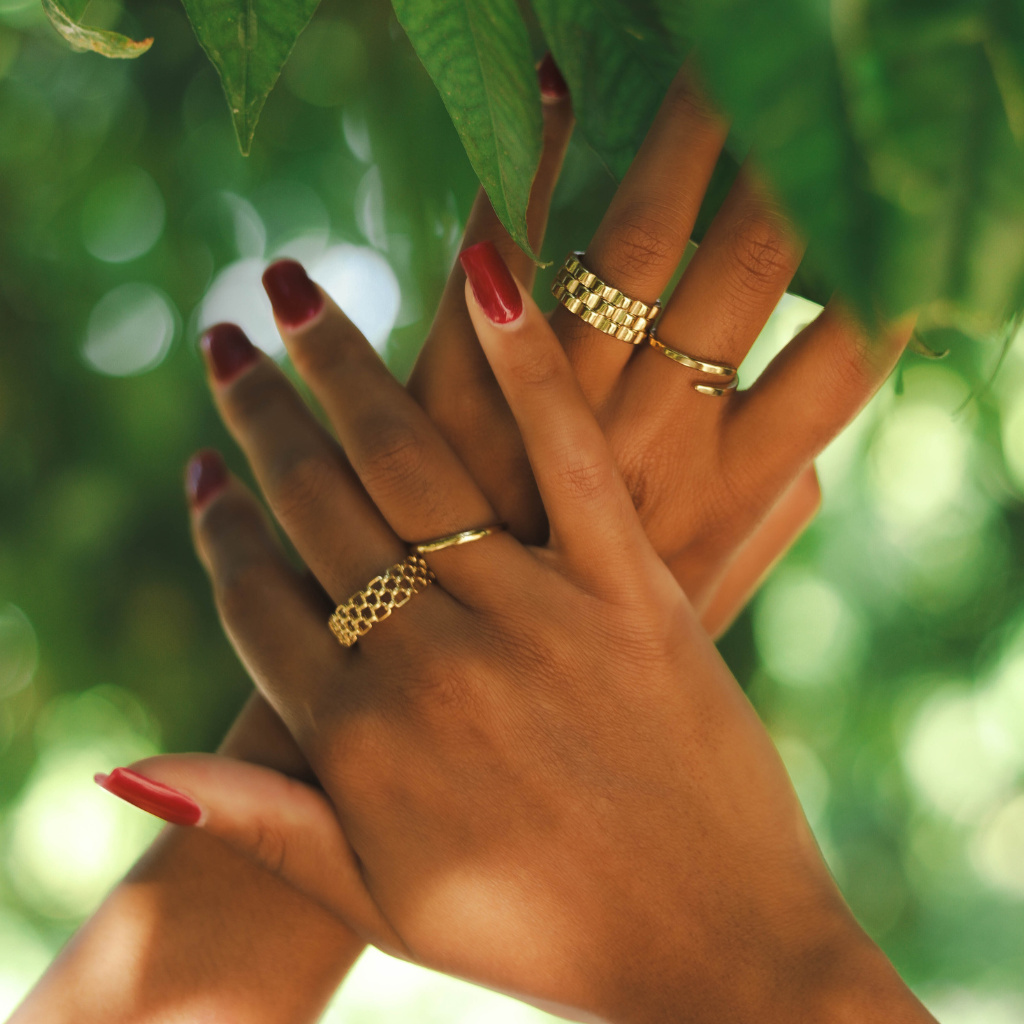 Build your signature stack with our collection of rings, from minimalist bands to bold, sculptural statements.