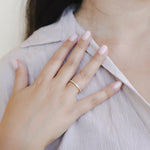 The Cascade Ring features a modern, open silhouette that elegantly wraps the finger. A brilliant line of stones follows the curve on one side, creating a stunning asymmetrical sparkle. This is the perfect piece for adding a touch of modern elegance to your look.