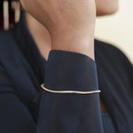Subtle, slinky, and endlessly sophisticated, the Celine Snake Chain is the delicate counterpart to our classic herringbone. It offers a whisper of liquid gold that rests beautifully against your skin. Its fluid, minimal design makes it perfect for an understated solo statement or a shimmering foundational layer.