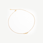 The Connection Necklace features two small, interlocking hoops that rest gracefully at the center of a fine cable chain. It’s a minimalist and meaningful piece, perfect for everyday wear, whether solo or as a foundational layering necklace.