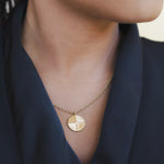 The Legacy Pendant features a classic coin silhouette, reimagined with an intricate woven texture that catches the light. At its heart, a single brilliant stone is flush-set for a subtle touch of sparkle, creating a piece that feels both enduring and modern.